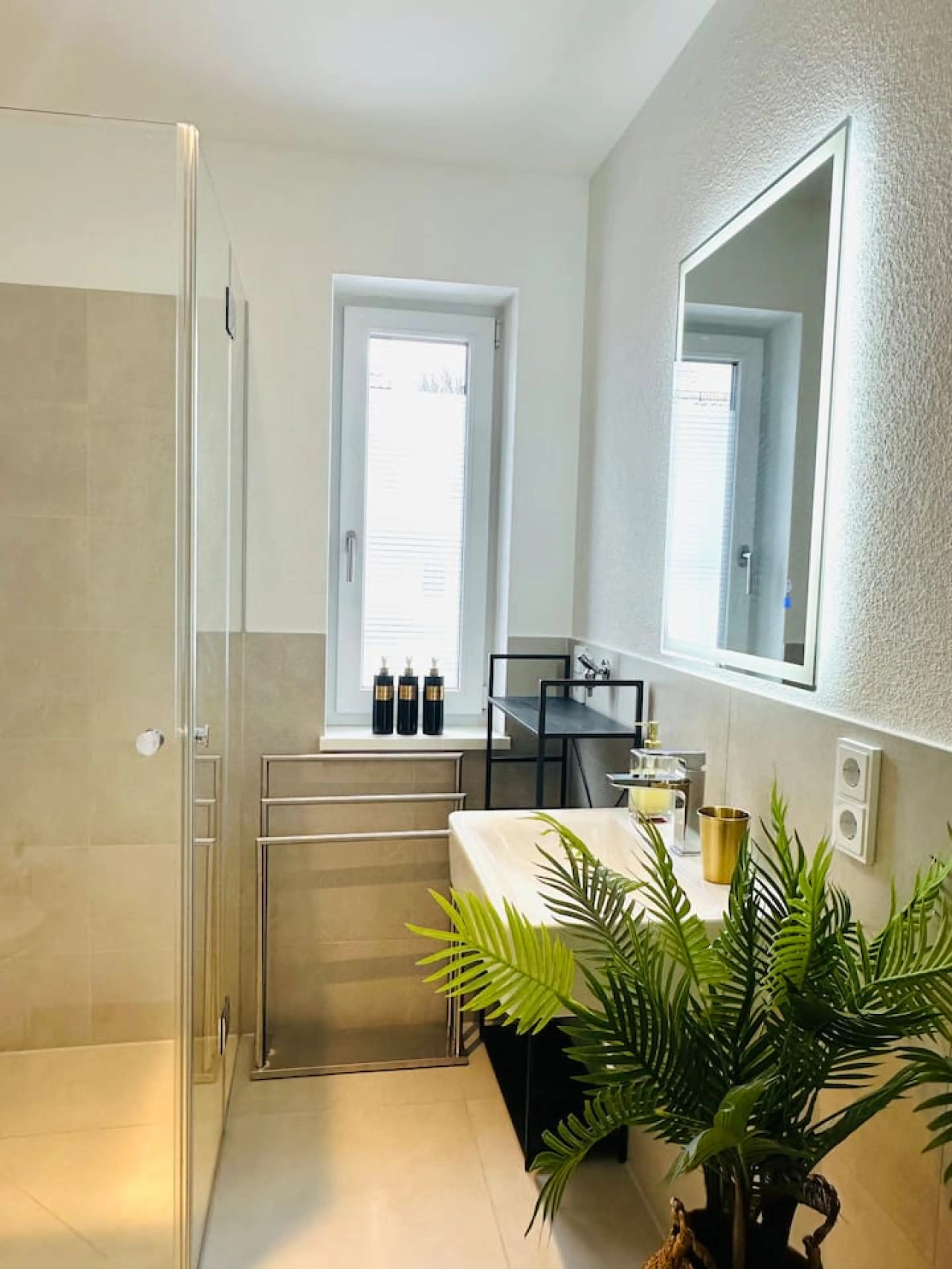 ☆ Genießen Sie eine erholsame Zeit in unserem liebevoll und stilvoll eingerichteten 45m2 Deluxe Studio mit Terrasse und Garten. Ob allein, zu zweit, oder als Familie, selbst für Besuch ist alles da: - 1 x Kingsize-Boxspringbett - 1 x Boxspringbett 90/200 - Smart-TV 56‘ - Kaffeevollautomat - Herd +...